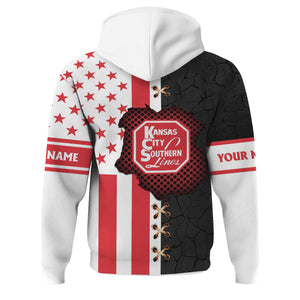 Railspirit Personalized Kansas City Southern Hoodie American Flag with Crack Effect Train Zip Up Hoodie