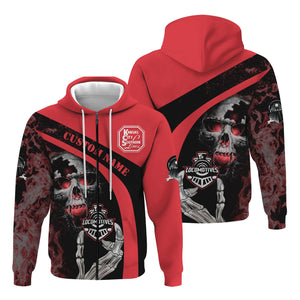 Railspirit Personalized Kansas City Southern Hoodie Flame Skull Design Train Zip Up Hoodie for Locomotive Fans