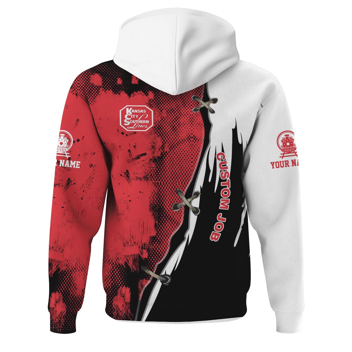 Railspirit Personalized Kansas City Southern Hoodie Retro Stitches Design with Custom Position Train Zip Up Hoodie