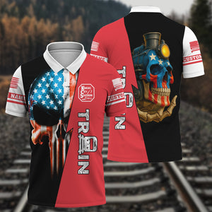 Railspirit Personalized Kansas City Southern Polo Shirt Train Skull American Flag Shirt All Over Print