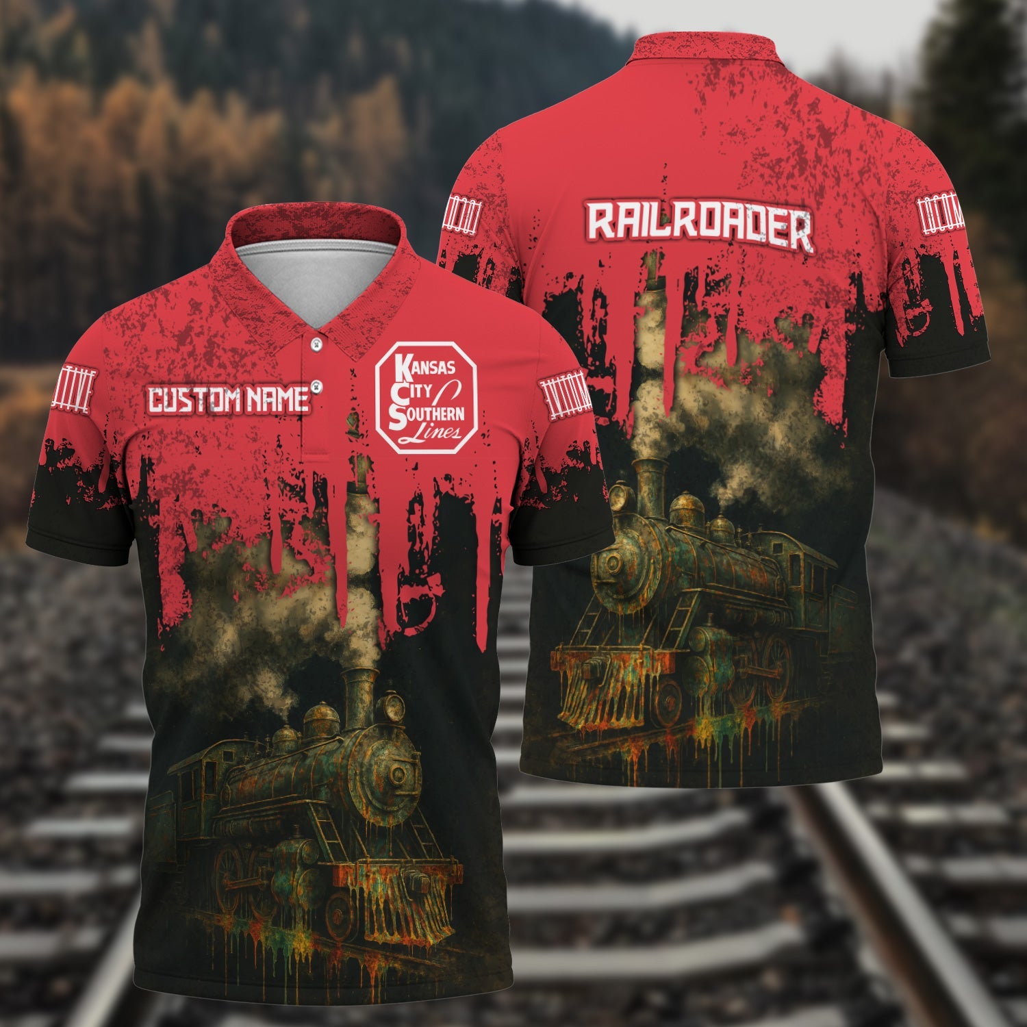 Railspirit Personalized Kansas City Southern Polo Shirt Vintage Train Art Style Shirt For Locomotive Fans
