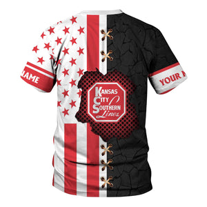 Railspirit Personalized Kansas City Southern T-Shirt American Flag with Crack Effect Train Shirt