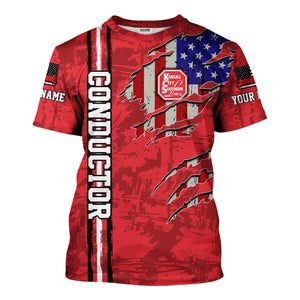 Railspirit Personalized Kansas City Southern T-Shirt USA Flag Claw Art with Custom Job Train Shirt