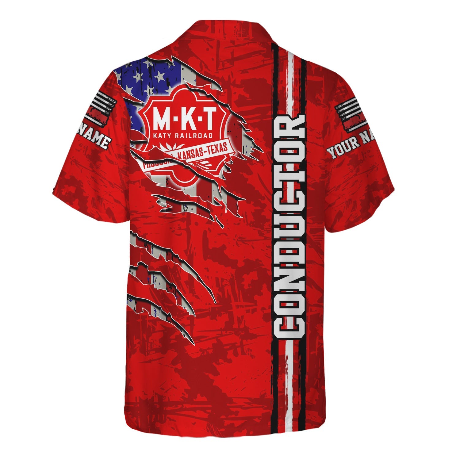 Railspirit Personalized Katy Railroad Hawaiian Shirt USA Flag Claw Art with Custom Job Train Shirt