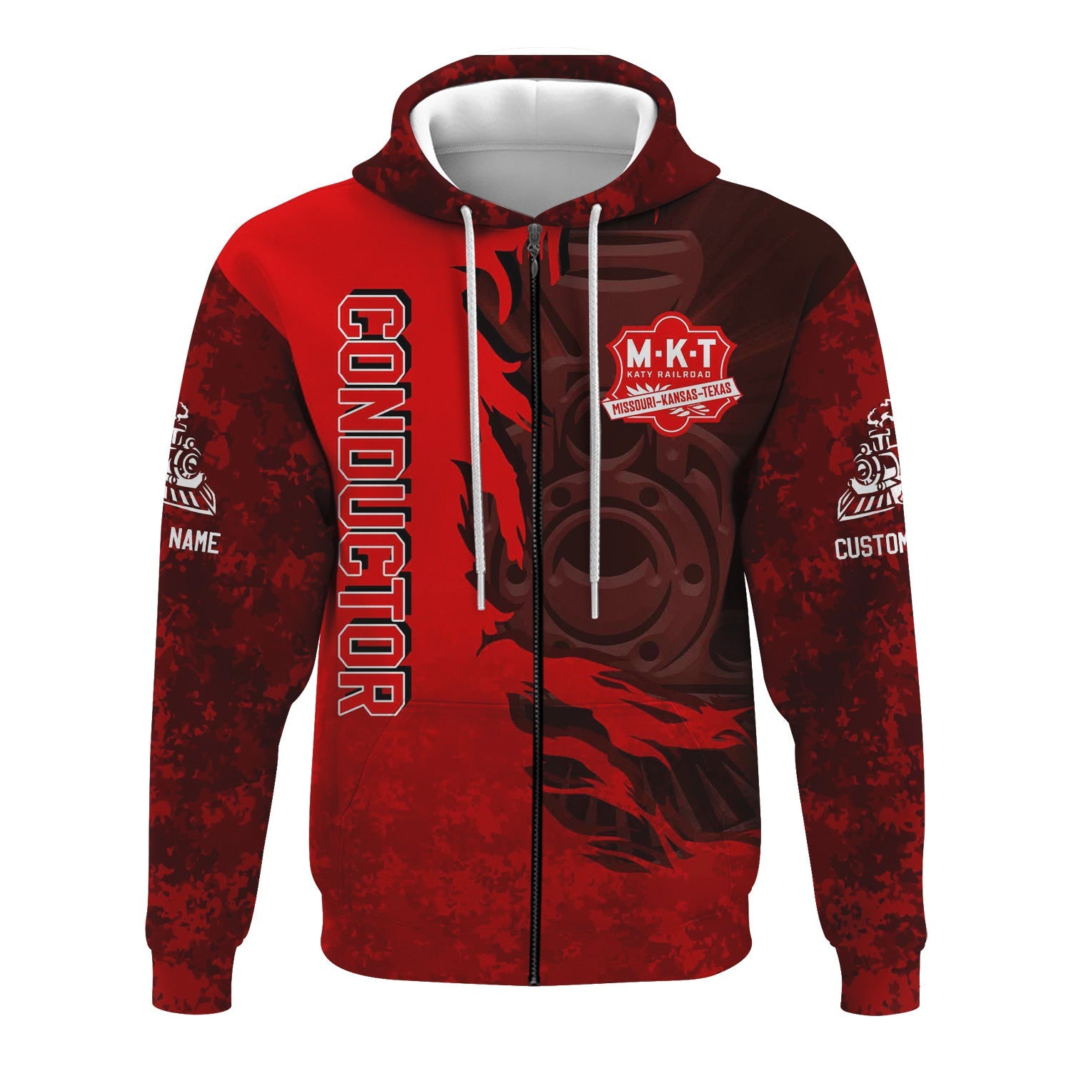 Railspirit Personalized Katy Railroad Hoodie Blazing Style with Custom Position Train Zip Up Hoodie