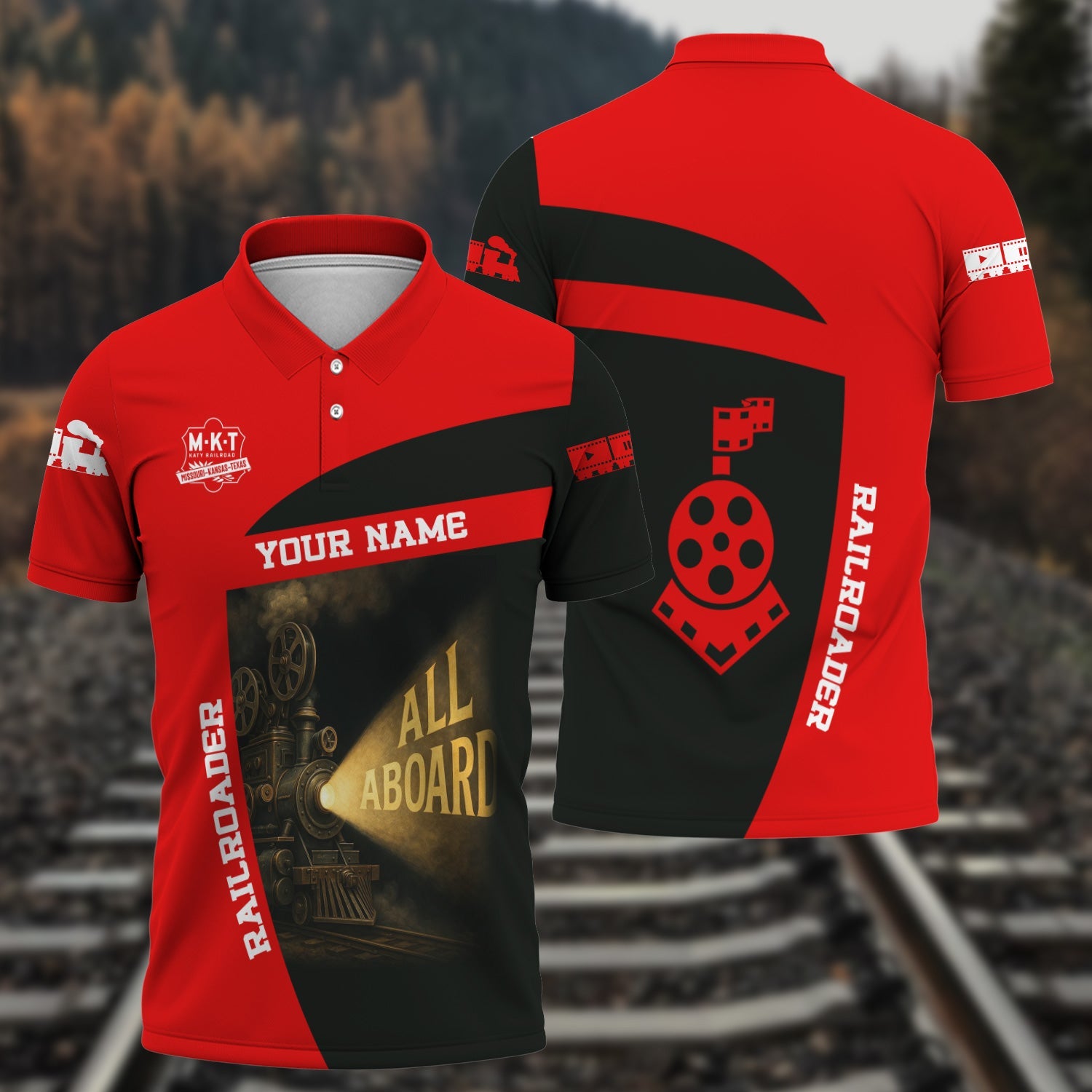 Railspirit Personalized Katy Railroad Polo Shirt All Aboard Steam Train Movie Projector Style Shirt