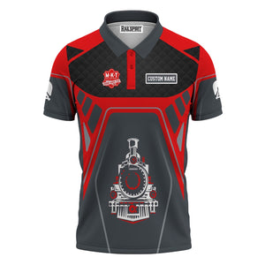 Railspirit Personalized Katy Railroad Polo Shirt Steam Locomotive Engine Graphic Train Shirt All Over Print