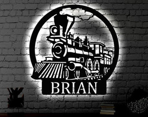 Railspirit Personalized Led Train Name Metal Sign Light Up Wall Art Housewarming Gift Door Hanger Wedding Gift Metal Led Train Monogram Sign