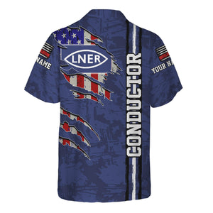Railspirit Personalized London and North Eastern Railway Hawaiian Shirt USA Flag Claw Art with Custom Job Train Shirt