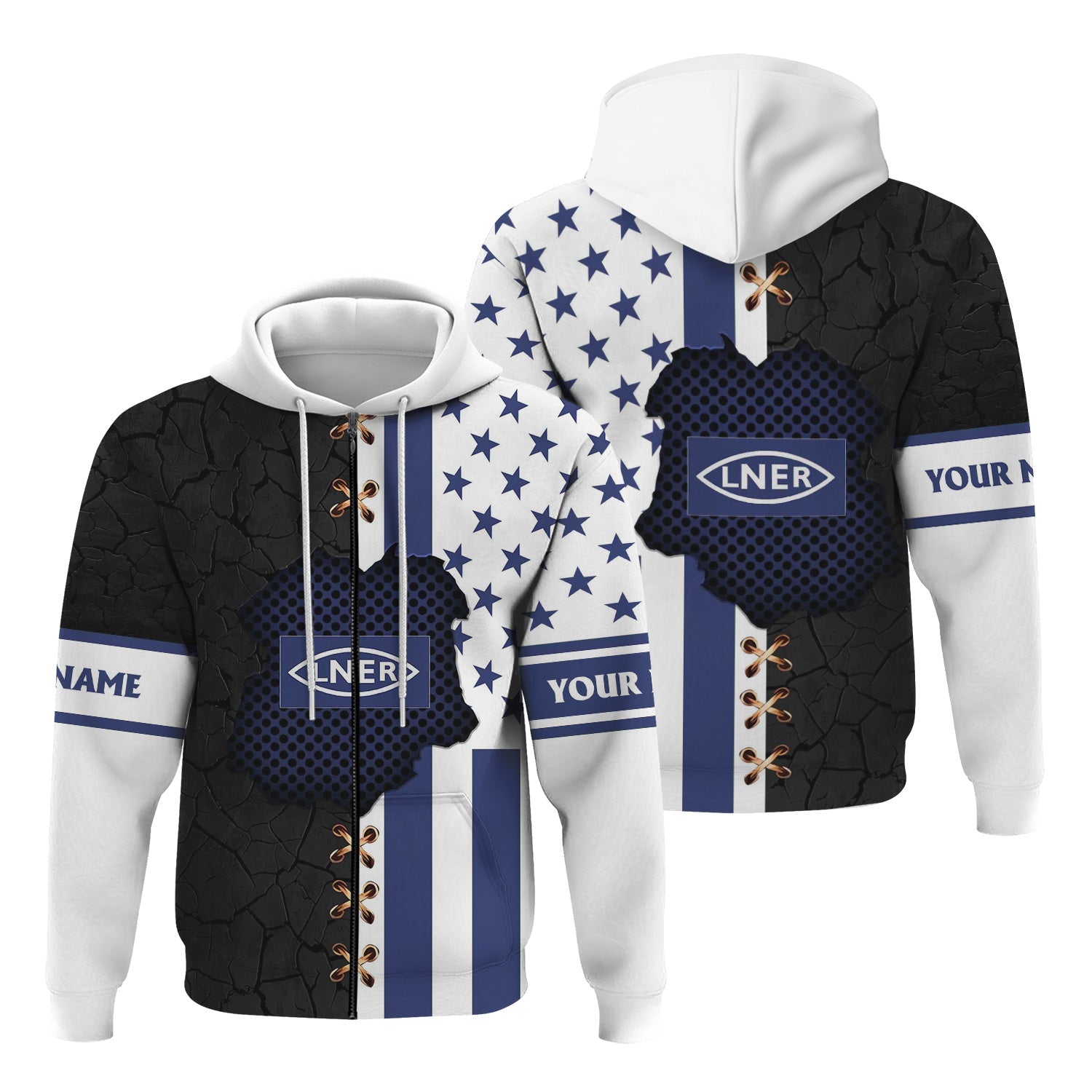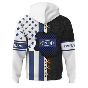 Railspirit Personalized London and North Eastern Railway Hoodie American Flag with Crack Effect Train Zip Up Hoodie