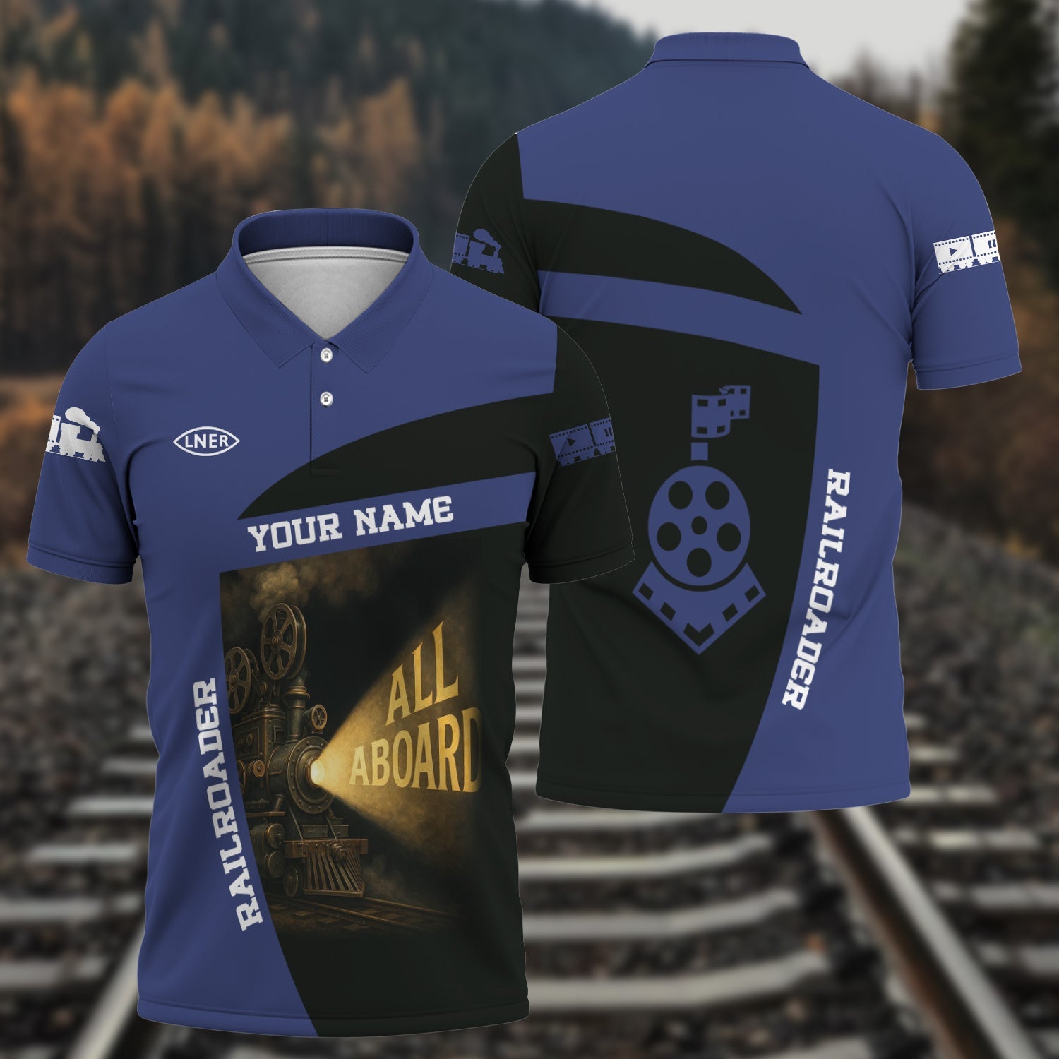 Railspirit Personalized London and North Eastern Railway Polo Shirt All Aboard Steam Train Movie Projector Style Shirt