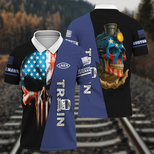Railspirit Personalized London and North Eastern Railway Polo Shirt Train Skull American Flag Shirt All Over Print