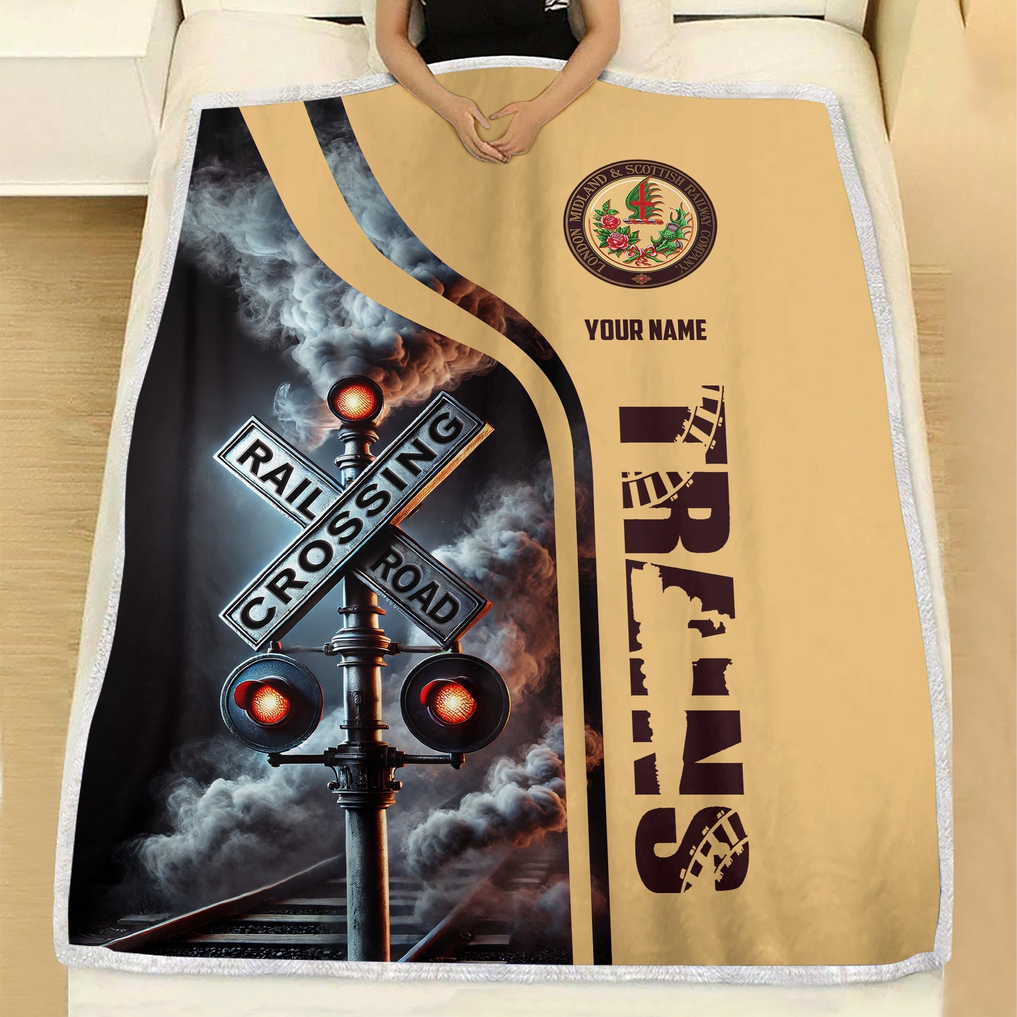 Railspirit Personalized London, Midland and Scottish Railway Blanket Railroad Crossing Sign Blanket All Over Print