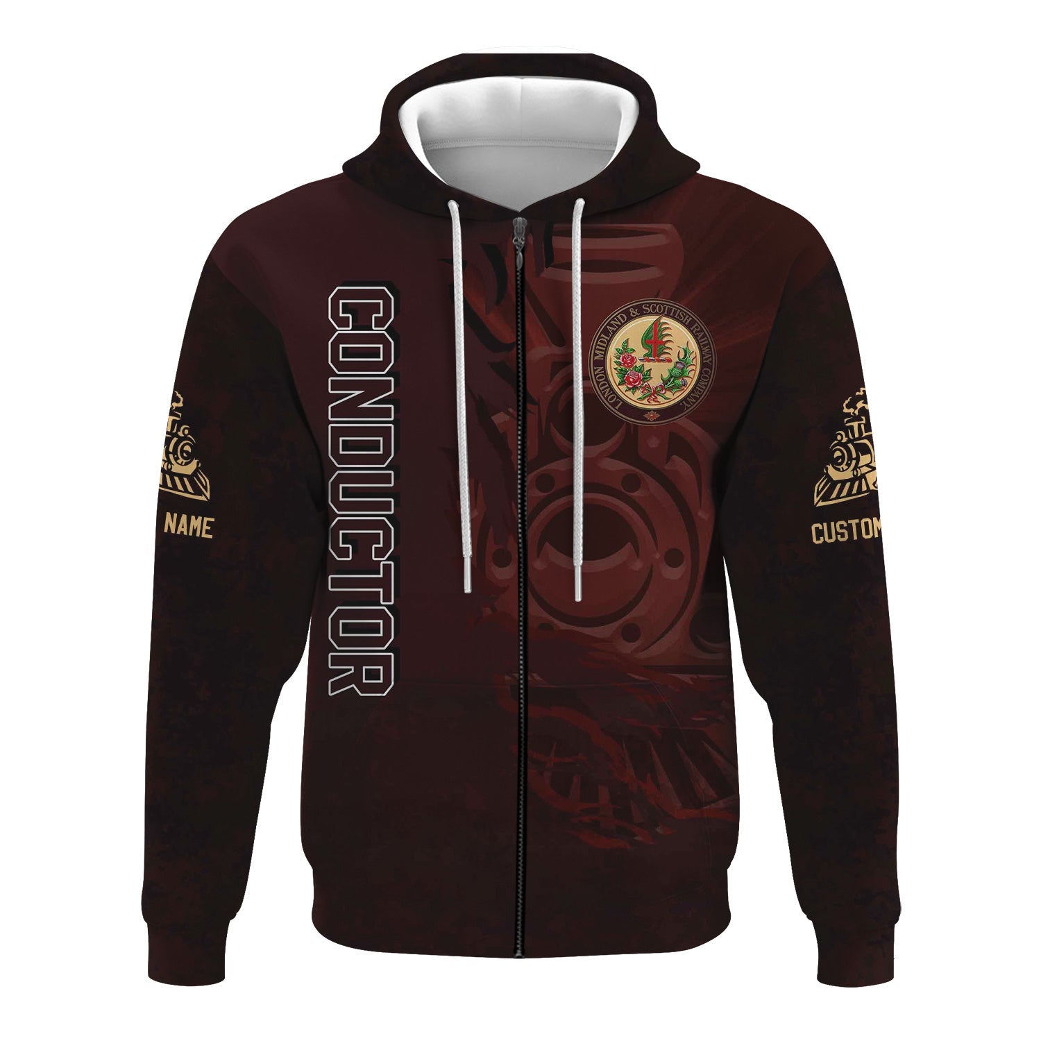 Railspirit Personalized London, Midland and Scottish Railway Hoodie Blazing Style with Custom Position Train Zip Up Hoodie