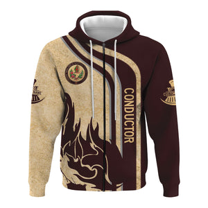 Railspirit Personalized London, Midland and Scottish Railway Hoodie Flame Design with Custom Job Position Train Zip Up Hoodie