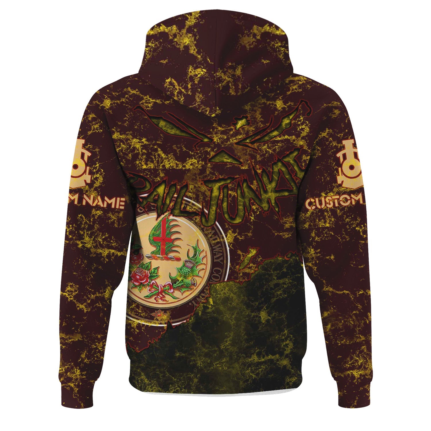 Railspirit Personalized London, Midland and Scottish Railway Hoodie Torn Graphic Style Train Zip Up Hoodie For Rail Junkie