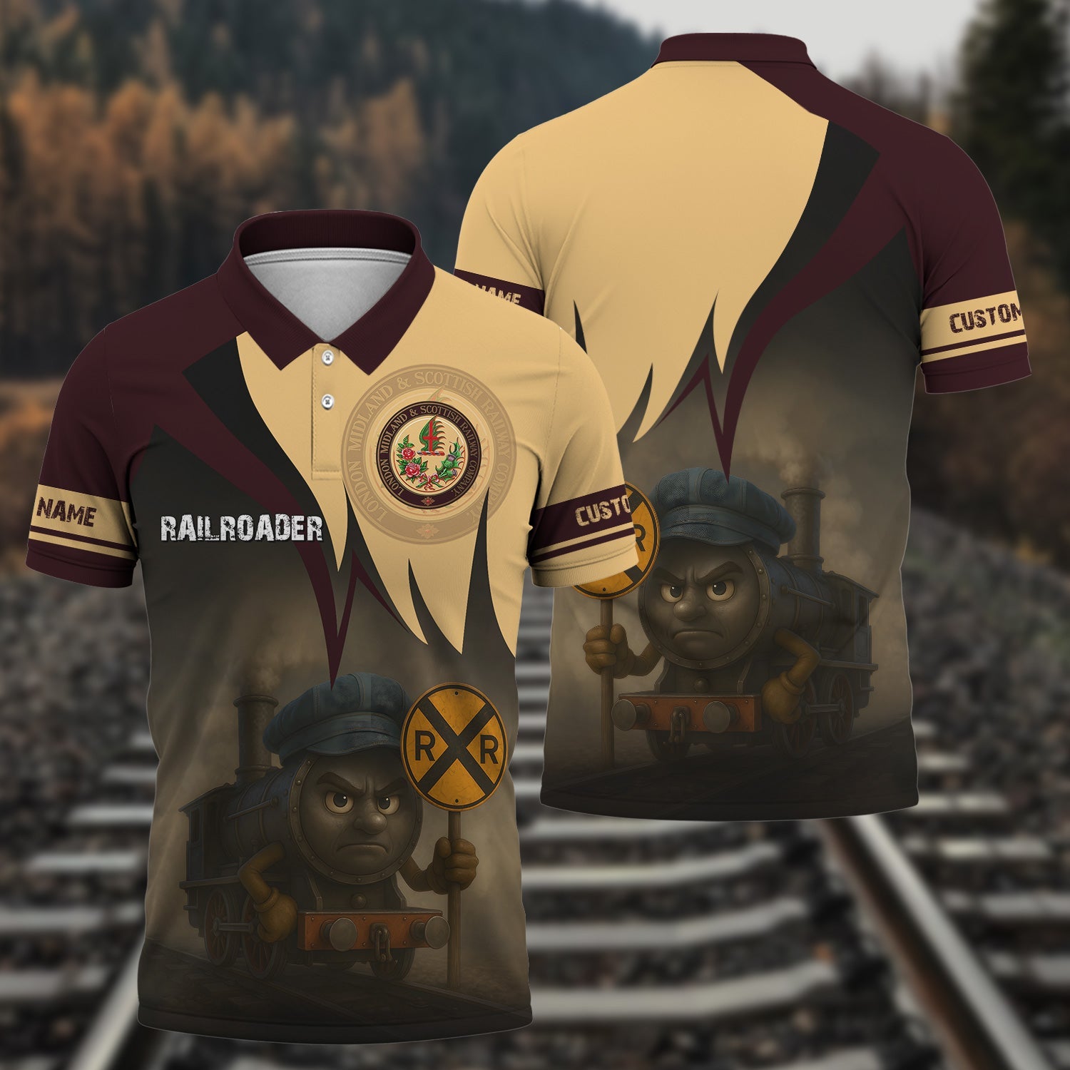 Railspirit Personalized London, Midland and Scottish Railway Polo Shirt Angry Train Polo Shirt Gift Idea For Train Lover