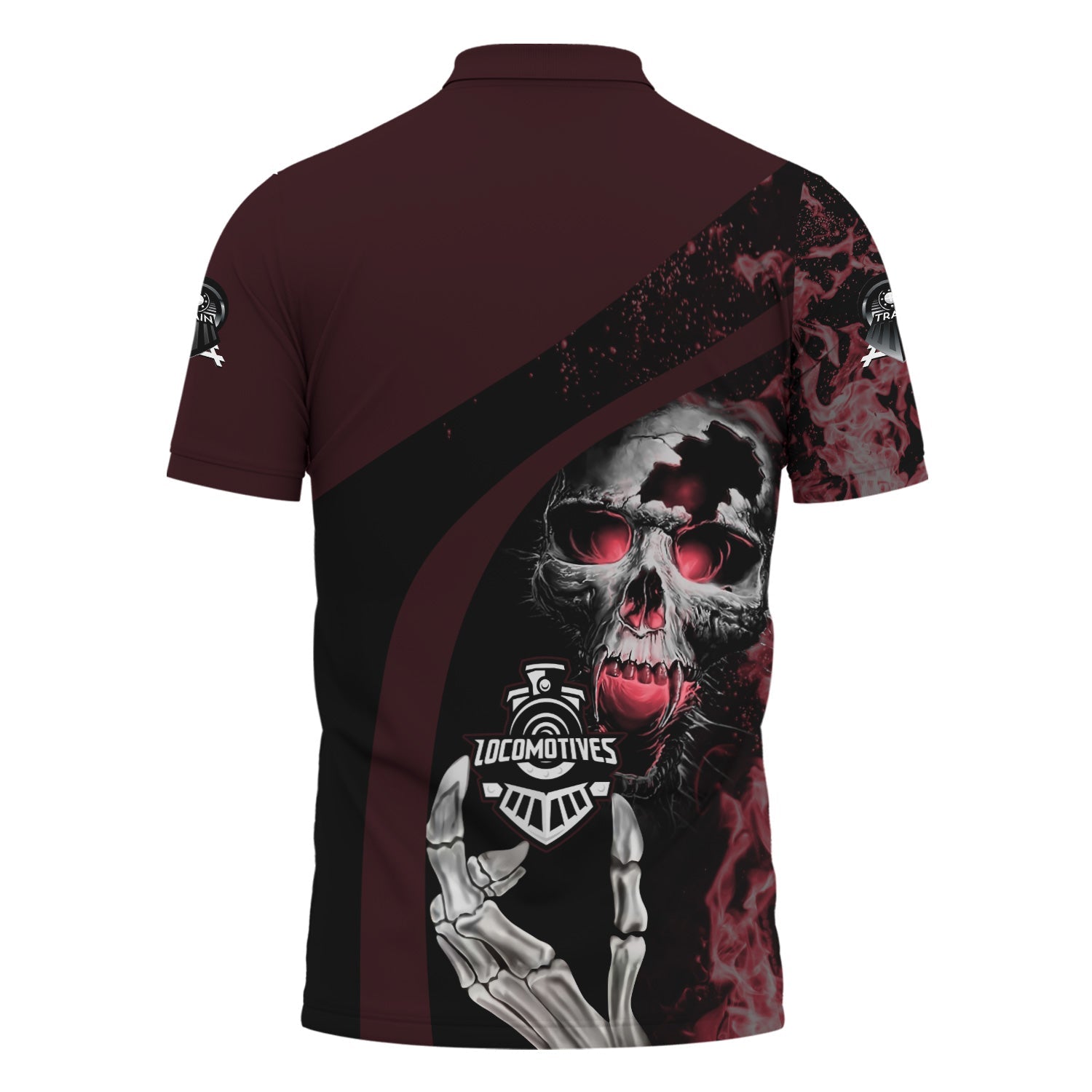 Railspirit Personalized London, Midland and Scottish Railway Polo Shirt Flame Skull Design Train Shirt for Locomotive Fans