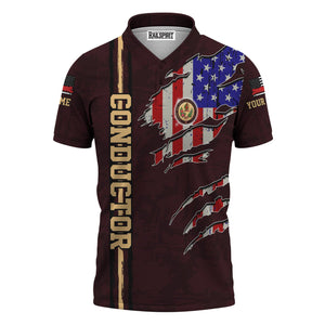 Railspirit Personalized London, Midland and Scottish Railway Polo Shirt USA Flag Claw Art with Custom Job Train Shirt