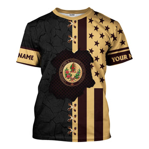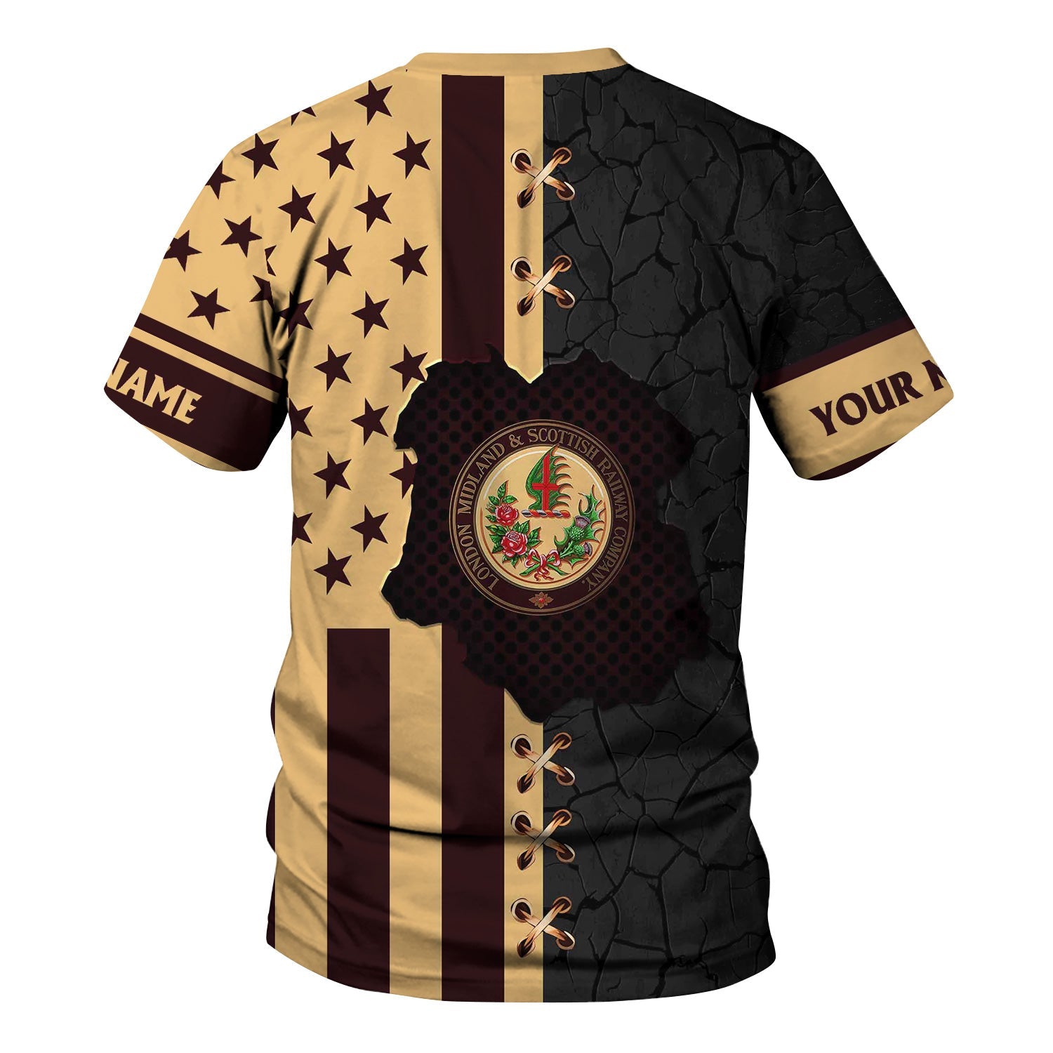 Railspirit Personalized London, Midland and Scottish Railway T-Shirt American Flag with Crack Effect Train Shirt