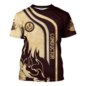 Railspirit Personalized London, Midland and Scottish Railway T-Shirt Flame Design with Custom Job Position Train Shirt