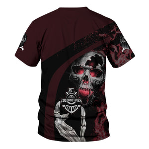 Railspirit Personalized London, Midland and Scottish Railway T-Shirt Flame Skull Design Train Shirt for Locomotive Fans
