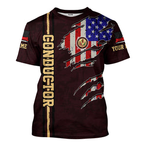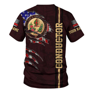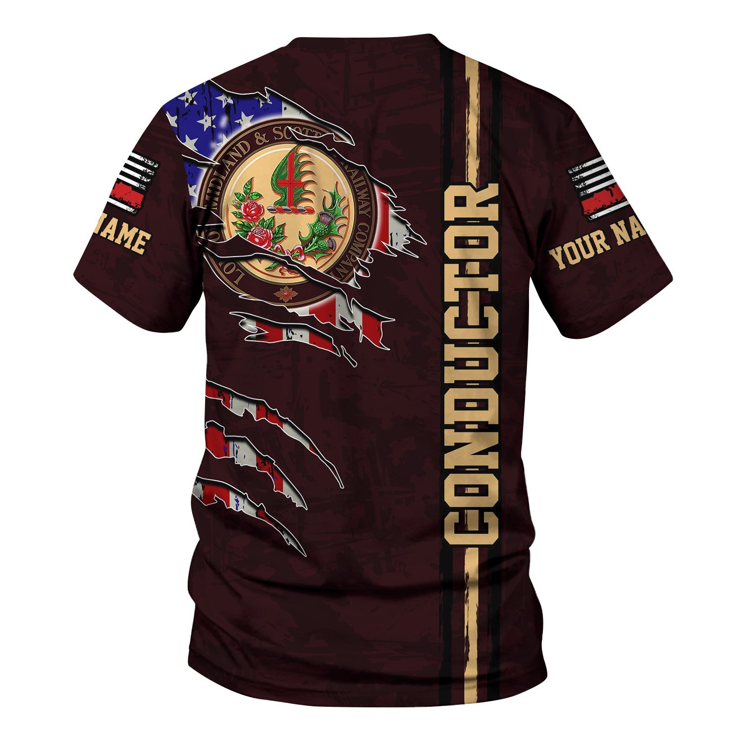 Railspirit Personalized London, Midland and Scottish Railway T-Shirt USA Flag Claw Art with Custom Job Train Shirt