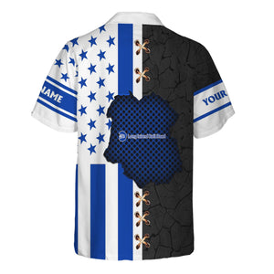 Railspirit Personalized Long Island Railroad Hawaiian Shirt American Flag with Crack Effect Train Shirt