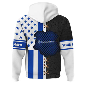 Railspirit Personalized Long Island Railroad Hoodie American Flag with Crack Effect Train Zip Up Hoodie
