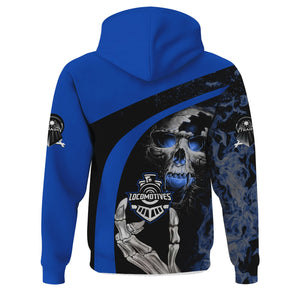 Railspirit Personalized Long Island Railroad Hoodie Flame Skull Design Train Zip Up Hoodie for Locomotive Fans