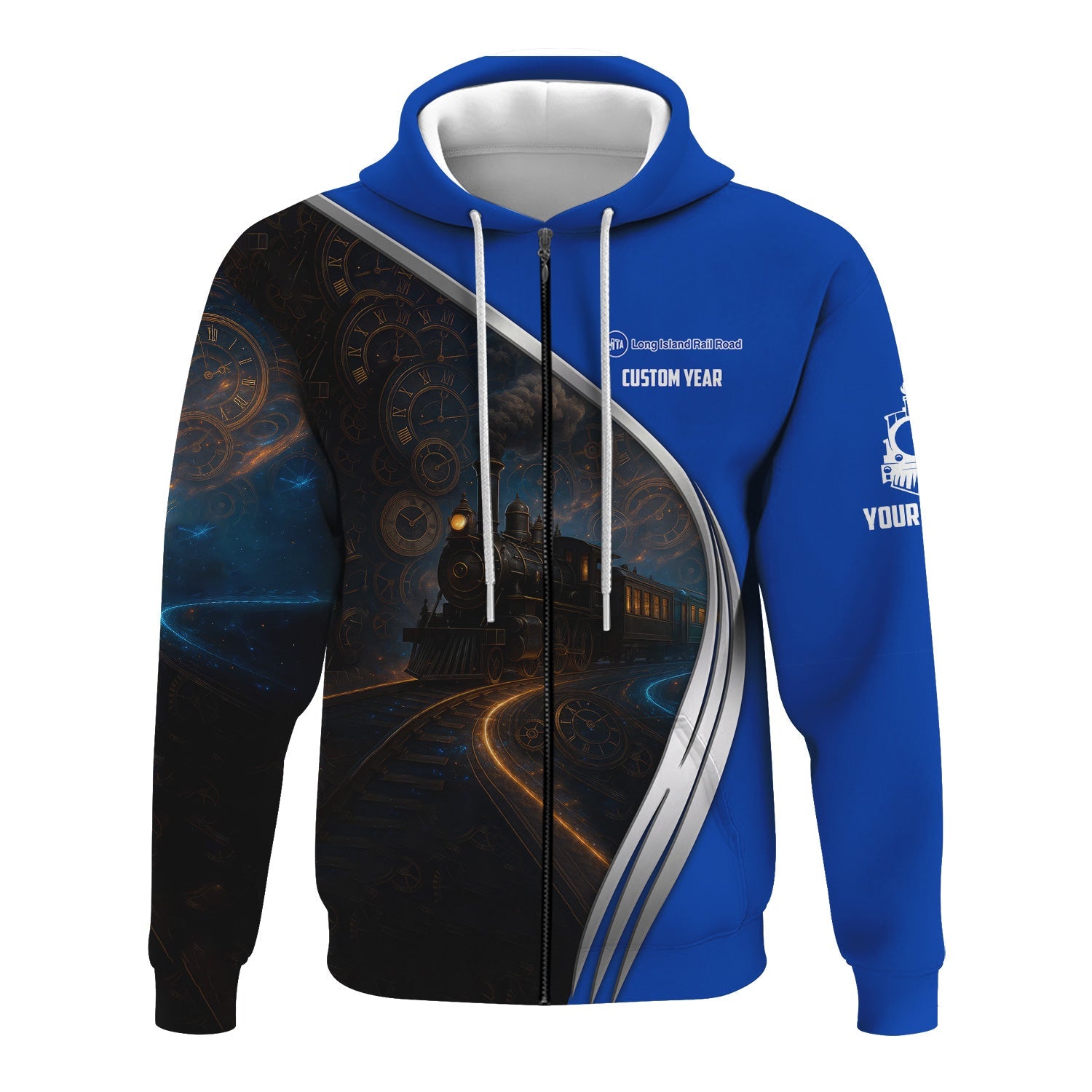 Railspirit Personalized Long Island Railroad Hoodie Steampunk Locomotive with Custom Year Train Zip Up Hoodie
