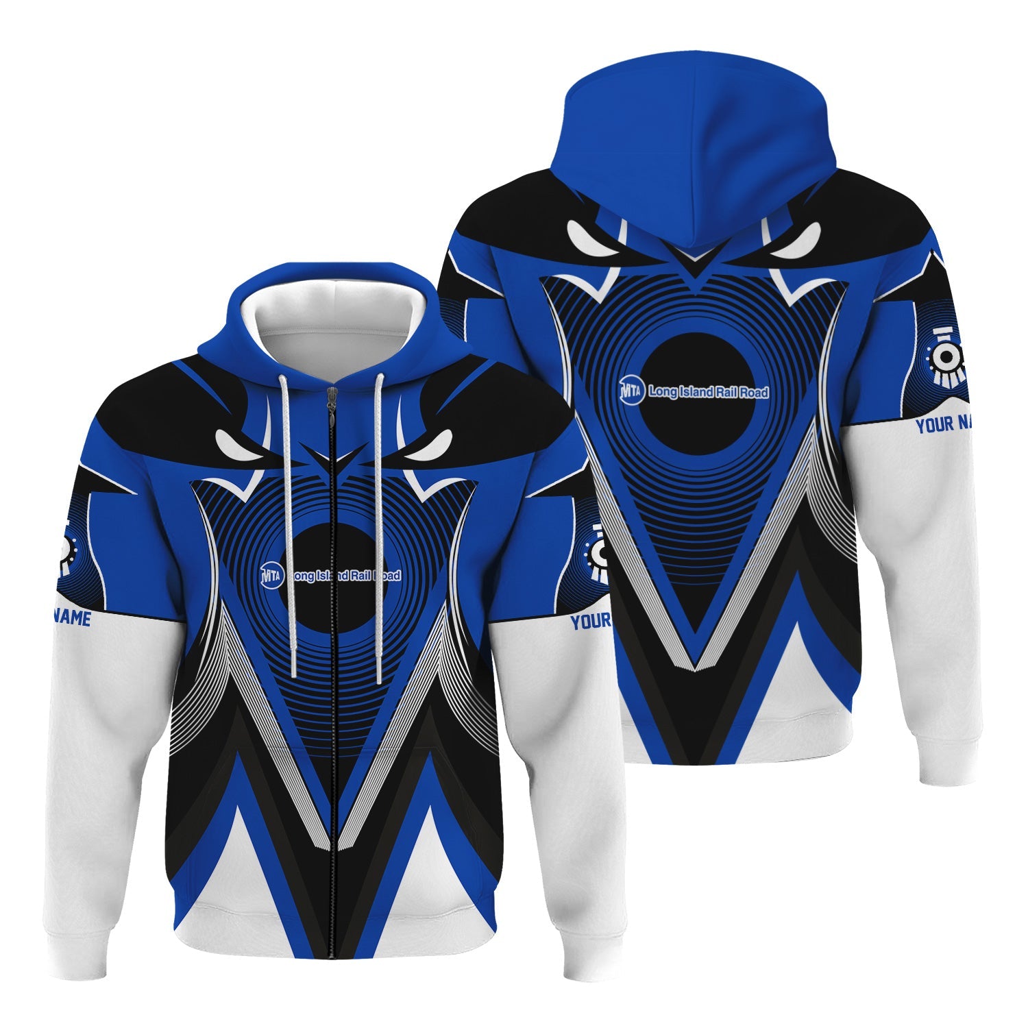 Railspirit Personalized Long Island Railroad Hoodie Vibrant Graphic Pattern Zip Up Hoodie For Train Enthusiasts