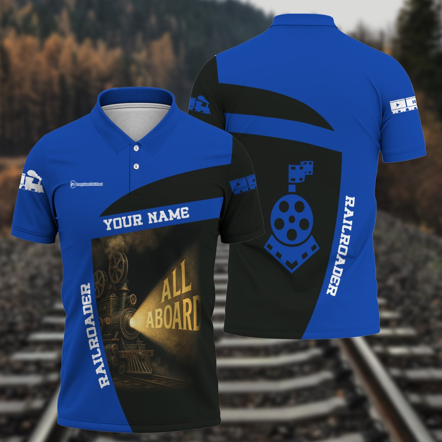Railspirit Personalized Long Island Railroad Polo Shirt All Aboard Steam Train Movie Projector Style Shirt