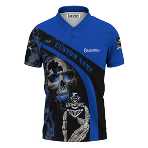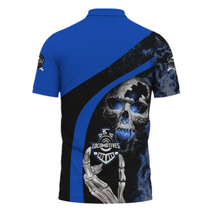 Railspirit Personalized Long Island Railroad Polo Shirt Flame Skull Design Train Shirt for Locomotive Fans