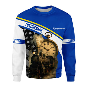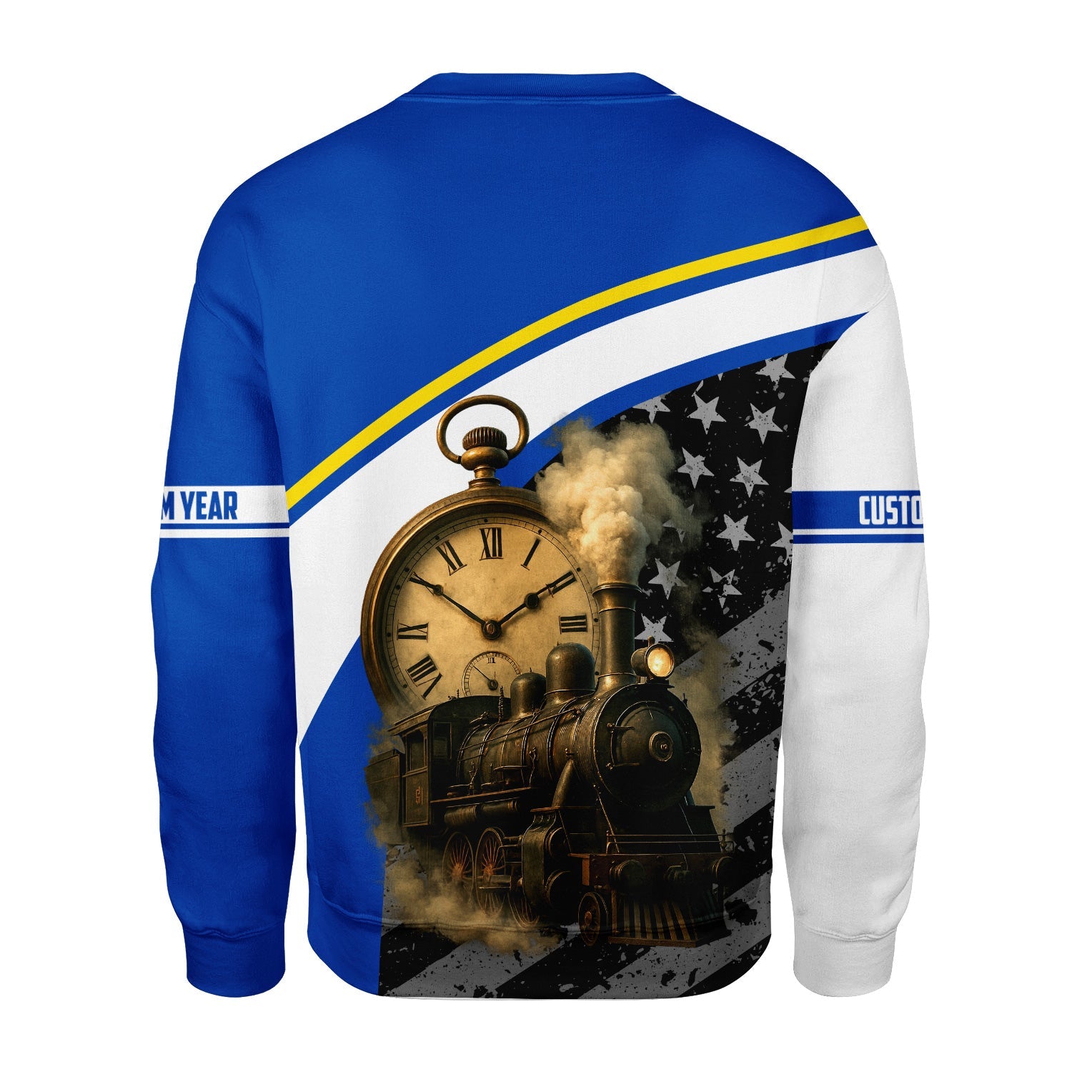 Railspirit Personalized Long Island Railroad Sweatshirt Classic Steam Engine With Retro Pocket Watch Shirt All Over Print