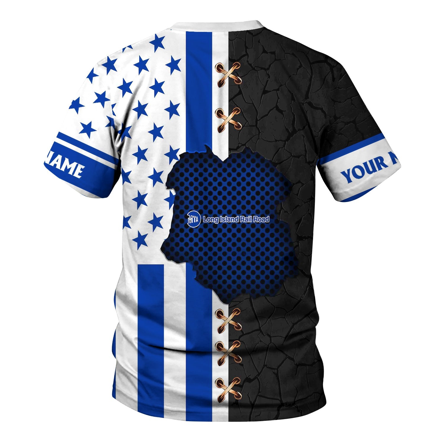 Railspirit Personalized Long Island Railroad T-Shirt American Flag with Crack Effect Train Shirt