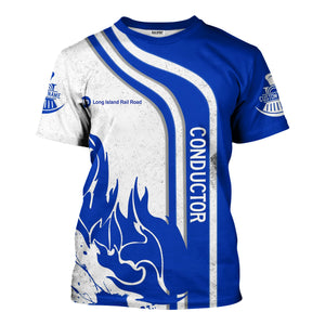 Railspirit Personalized Long Island Railroad T-Shirt Flame Design with Custom Job Position Train Shirt