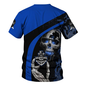Railspirit Personalized Long Island Railroad T-Shirt Flame Skull Design Train Shirt for Locomotive Fans