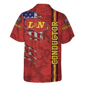 Railspirit Personalized Louisville and Nashville Railroad Hawaiian Shirt USA Flag Claw Art with Custom Job L&N Train Shirt