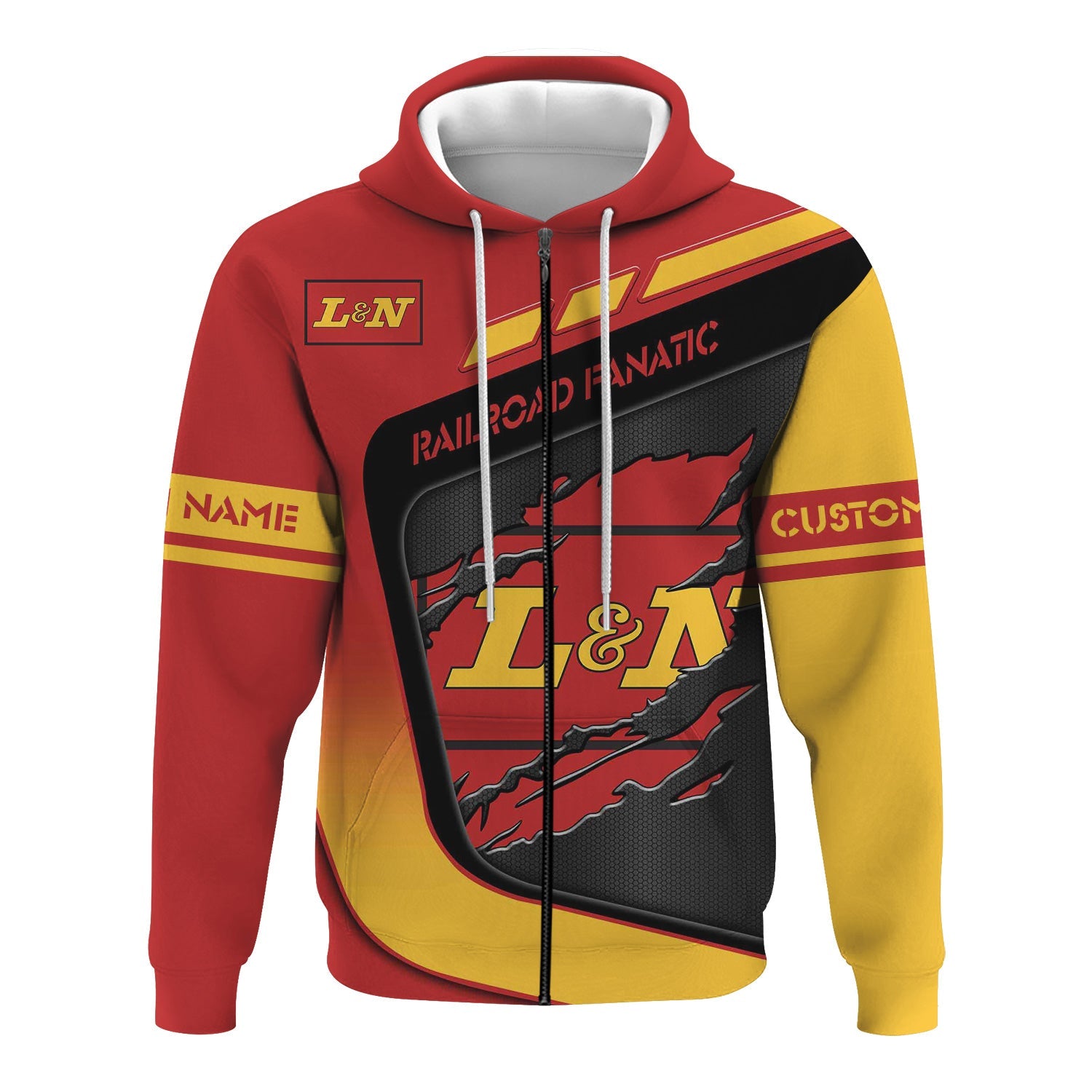 Railspirit Personalized Louisville and Nashville Railroad Hoodie Ripped Texture Style L&N Train Zip Up Hoodie For Railroad Fanatic