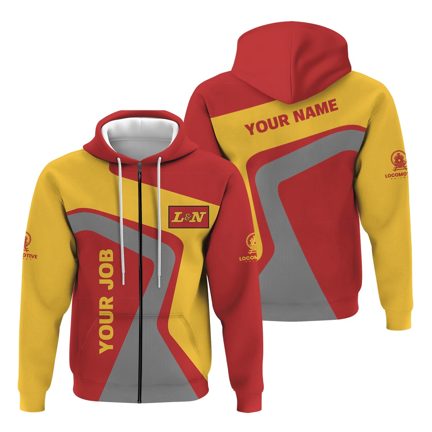 Railspirit Personalized Louisville and Nashville Railroad Hoodie Unique Design with Custom Job Position L&N Train Zip Up Hoodie