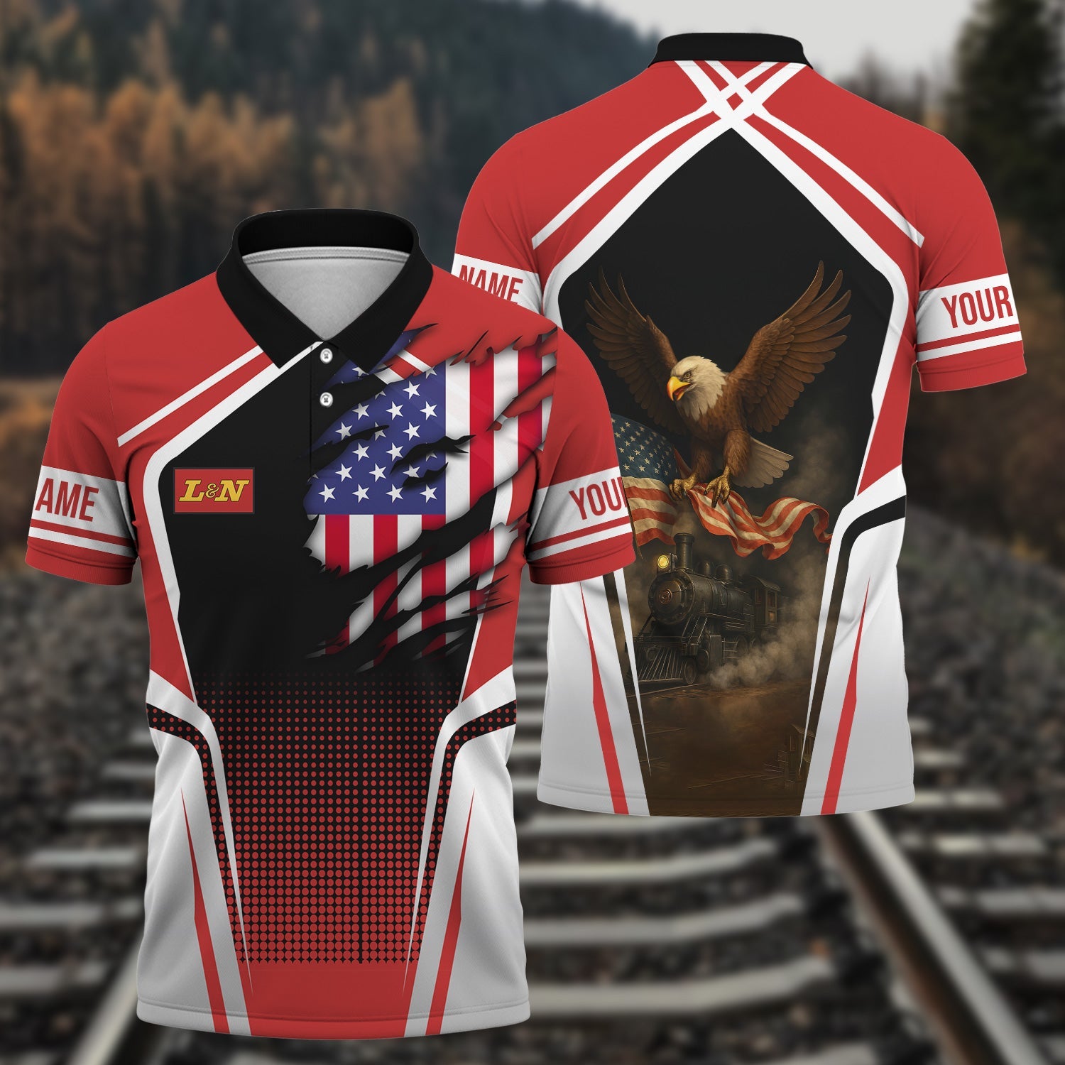 Railspirit Personalized Louisville and Nashville Railroad Polo Shirt American Eagle Vintage Train L&N Shirt