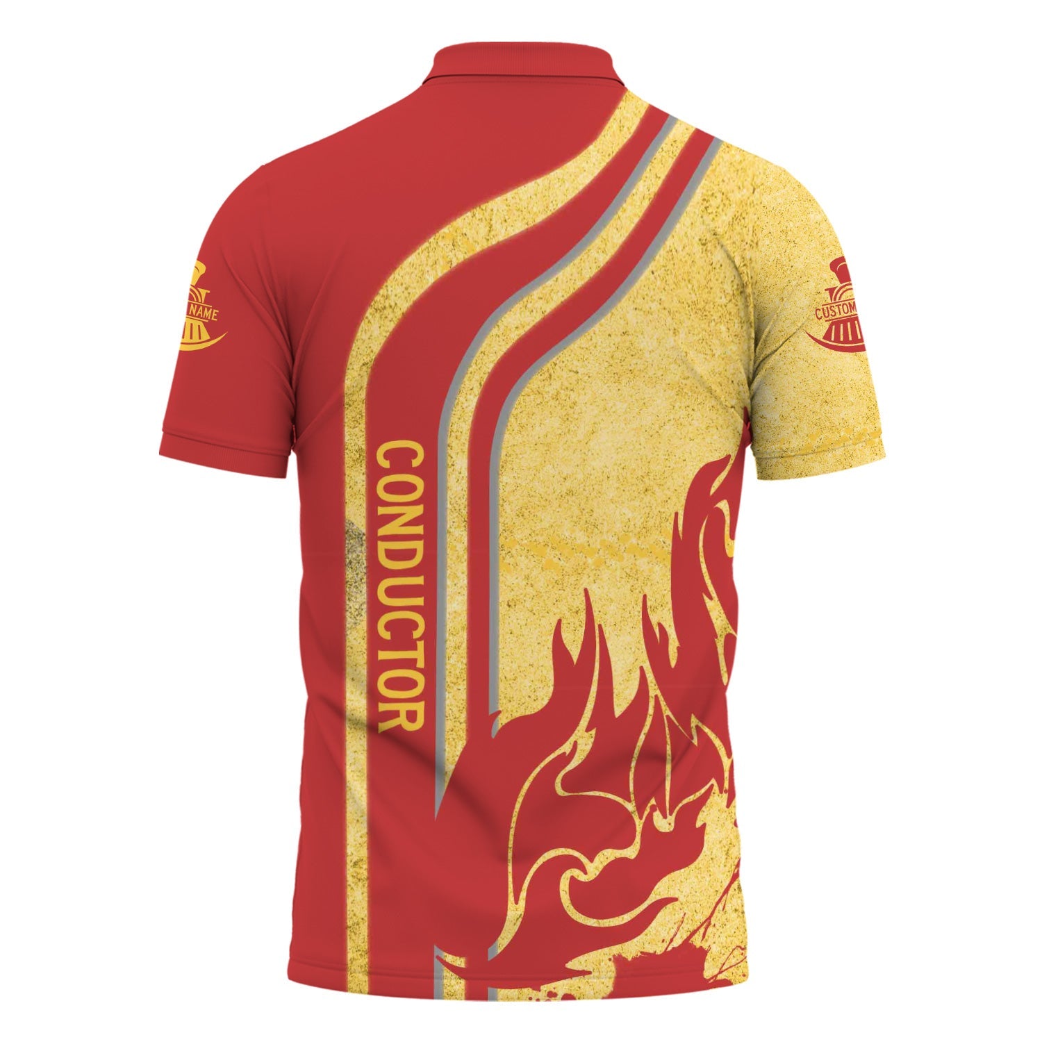 Railspirit Personalized Louisville and Nashville Railroad Polo Shirt Flame Design with Custom Job Position L&N Train Shirt