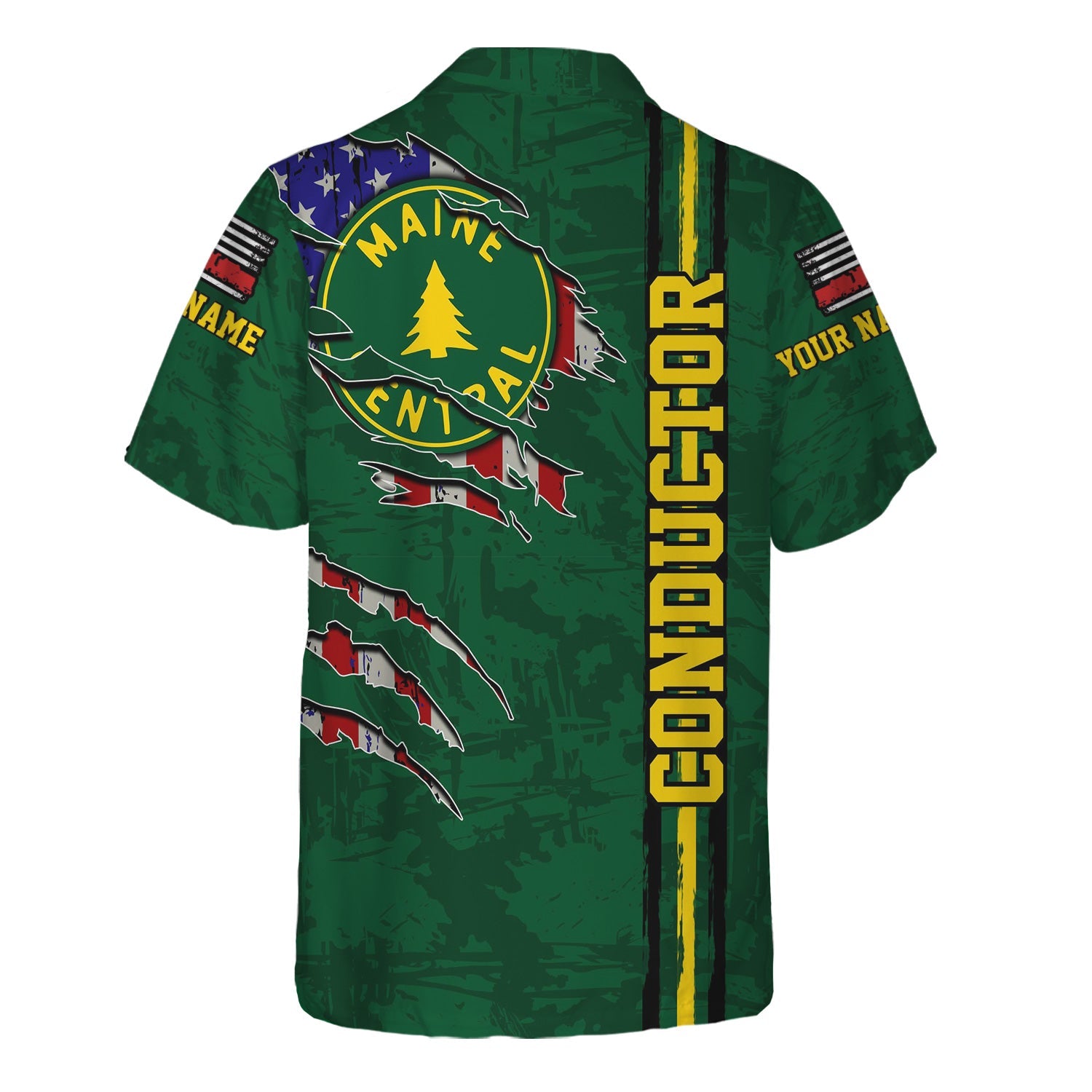 Railspirit Personalized Maine Central Railroad Hawaiian Shirt USA Flag Claw Art with Custom Job Train Shirt