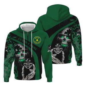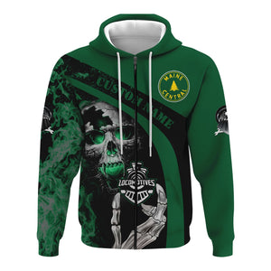 Railspirit Personalized Maine Central Railroad Hoodie Flame Skull Design Train Zip Up Hoodie for Locomotive Fans