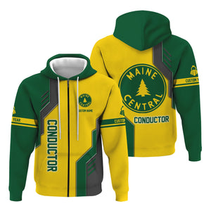 Railspirit Personalized Maine Central Railroad Hoodie Unique Railway Style with Custom Job Train Zip Up Hoodie