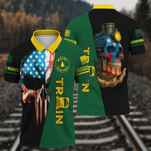 Railspirit Personalized Maine Central Railroad Polo Shirt Train Skull American Flag Shirt All Over Print
