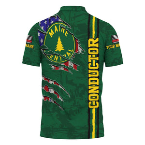 Railspirit Personalized Maine Central Railroad Polo Shirt USA Flag Claw Art with Custom Job Train Shirt