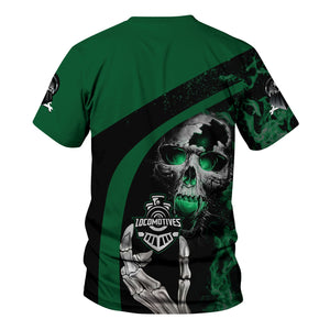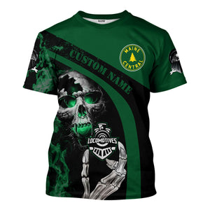Railspirit Personalized Maine Central Railroad T-Shirt Flame Skull Design Train Shirt for Locomotive Fans
