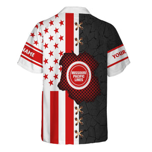 Railspirit Personalized Missouri Pacific Railroad Hawaiian Shirt American Flag with Crack Effect Train Shirt